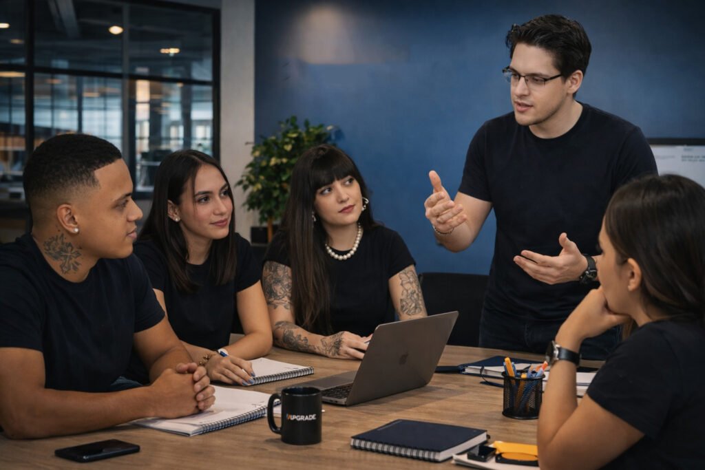Na Upgrade, tanto os Designers, Gestores e Analistas trabalham lado a lado, conseguimos aplicar estratégias criativas e assertivas dentro do nosso nicho de atuação de forma ágil, focando em trazer resultados e na experiência para nossos colegas e parcerios.